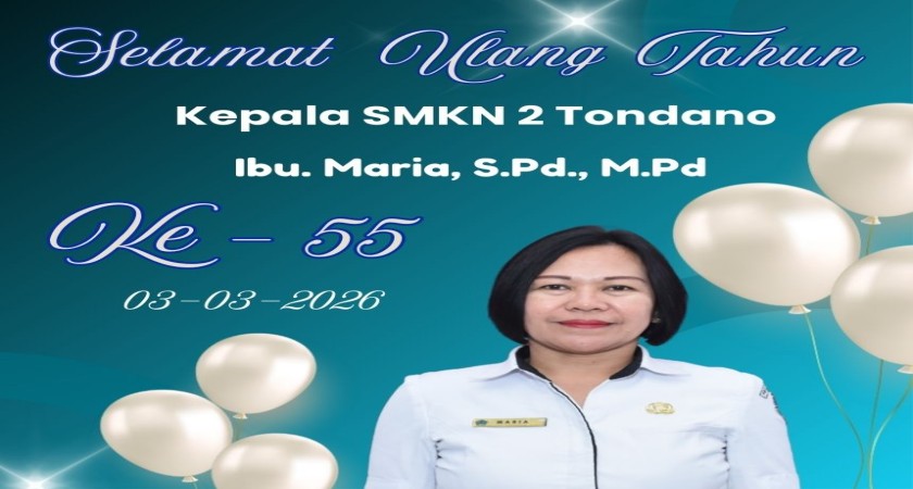 Kepala SMK Negeri 2 Tondano Ibu. Maria, S.Pd., M.Pd. Tuhan Kiranya Memberkati Tugas dan Pelayanan.